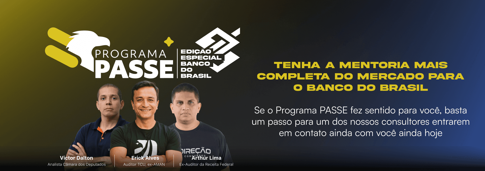 Mentorias exclusivas com Erick Alves, Arthur Lima e Victor Dalton